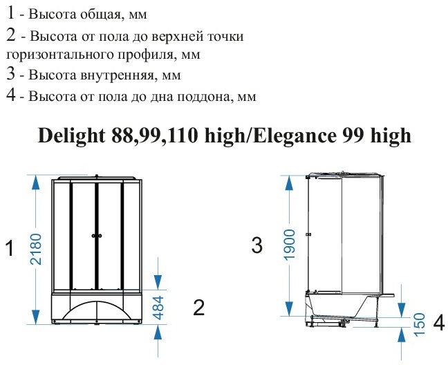 Душевая кабина Domani-Spa Delight 110 high 100x100 (прозрачное стекло / белые стенки)