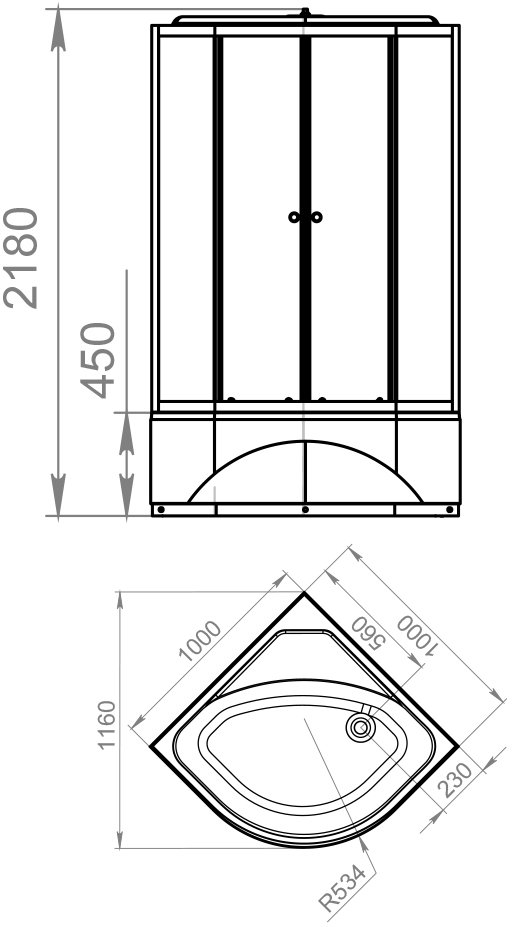 Размер: 100 х 100 х 218 см.