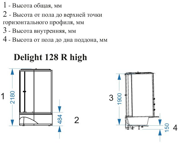 Душевая кабина Domani-Spa Delight 128 high R 120x80 (прозрачное стекло / голубые стенки) с крышей с гидромассажем