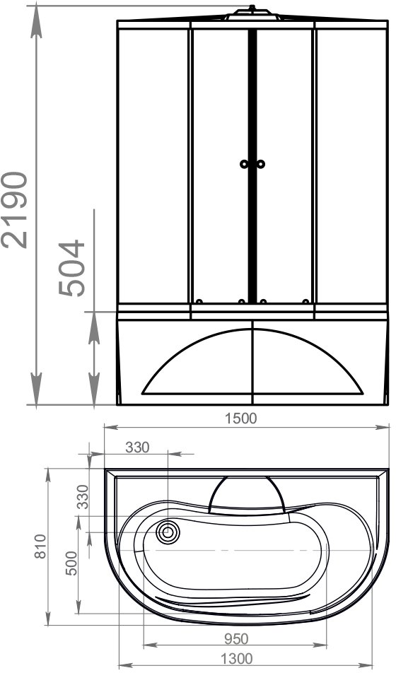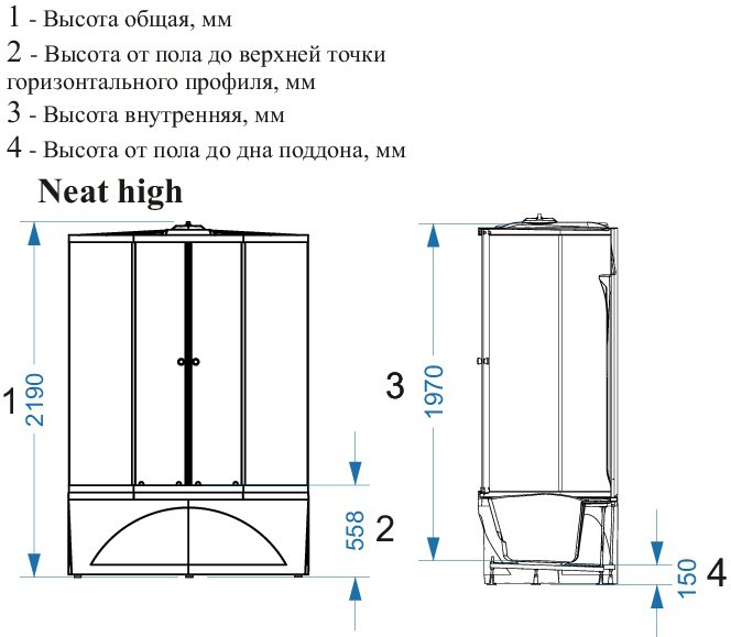 Душевая кабина Domani-Spa Neat high 150x80 (прозрачное стекло / черные стенки) с крышей с гидромассажем