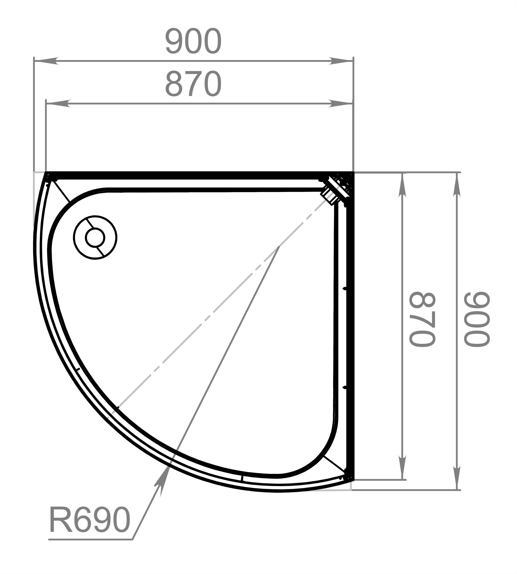Размер: 90 х 90 х 218 см.