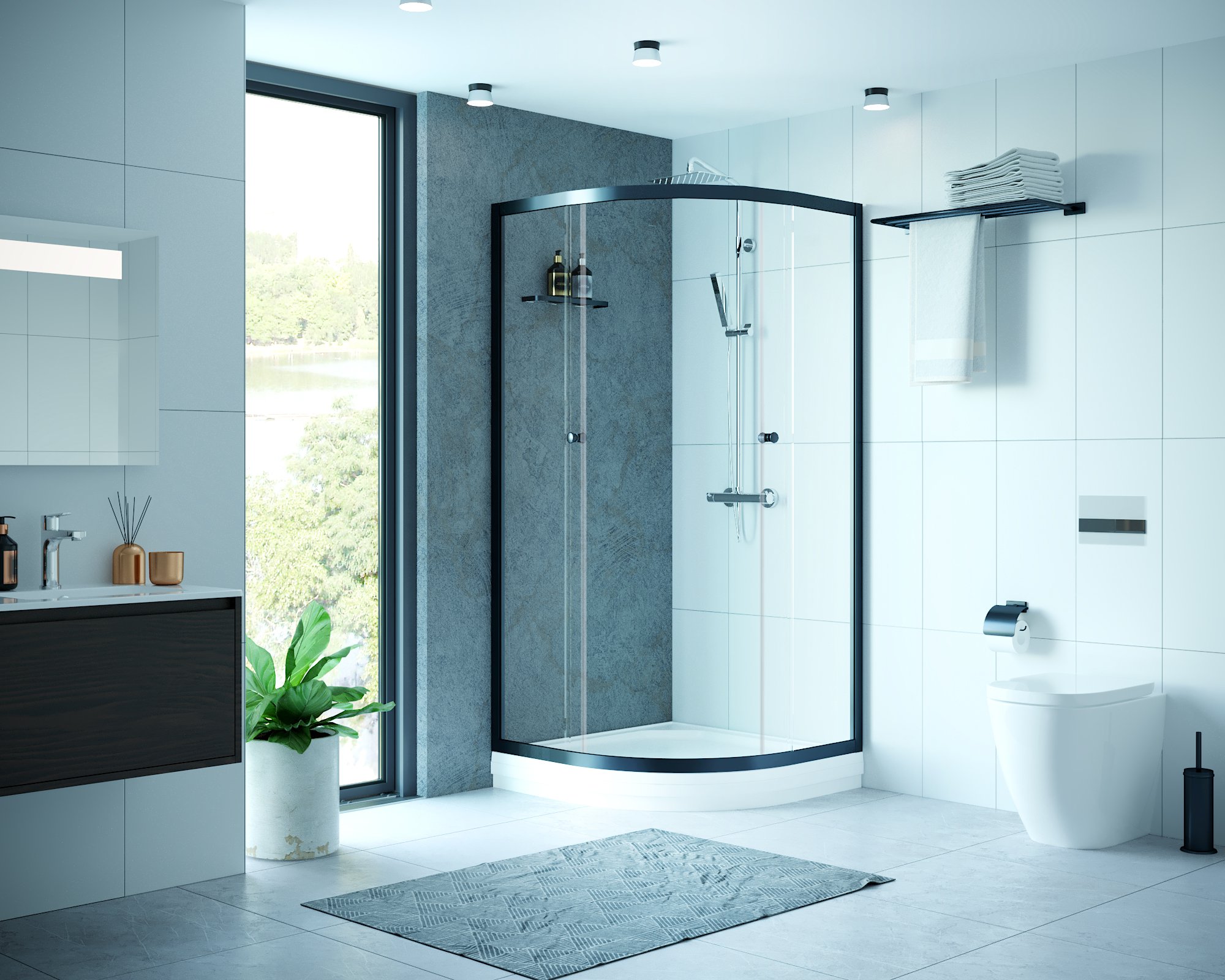 Душевой уголок Domani-Spa Fit 99 Graphite 90x90x180 (прозрачное стекло / черный профиль)