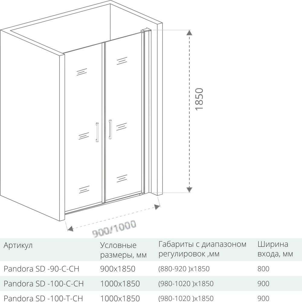 Душевая дверь GoodDooor PANDORA SD-90-C-CH 90x185 прозрачные стекла