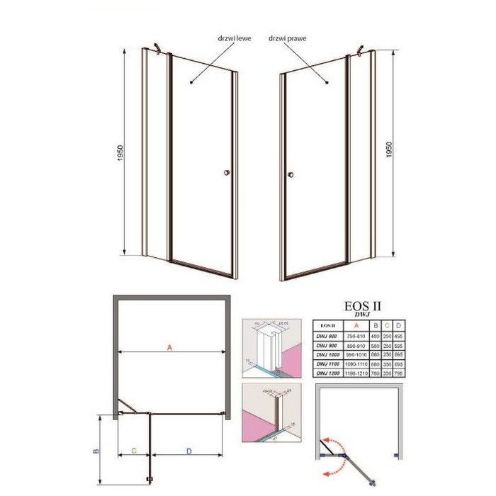 Коллекция Eos II это расширение коллекции Eos. Модели Eos II отличаются тем что у них между створкой двери и стеной находится неподвижное стекло. Обе коллекции очень