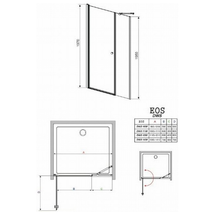 Eos DWS — одностворчатая дверь для широкой ниши.