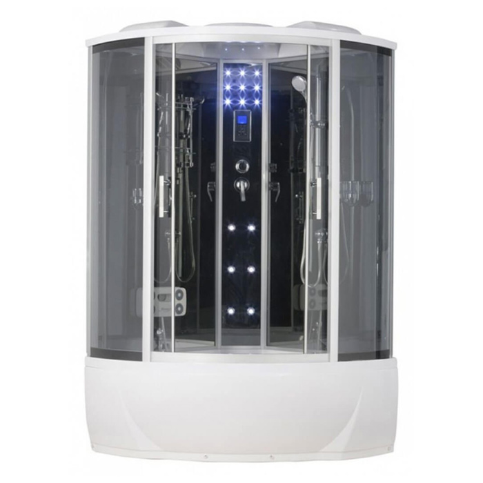 ERLIT ER4320T-C2 - это гидромассажная душевая кабина в классическом стиле, полукруглой формы, с раздвижными дверьми, оборудованный системой гидромассажа, ручного и тропического душа. Стекла закаленные, травмобезопасные, тонированные, толщиной 4 мм. Поддон глубокий 50 см, на металлическом каркасе, в комплекте со съемным экраном и сифоном. Задняя стенка - черное зеркальное стекло.