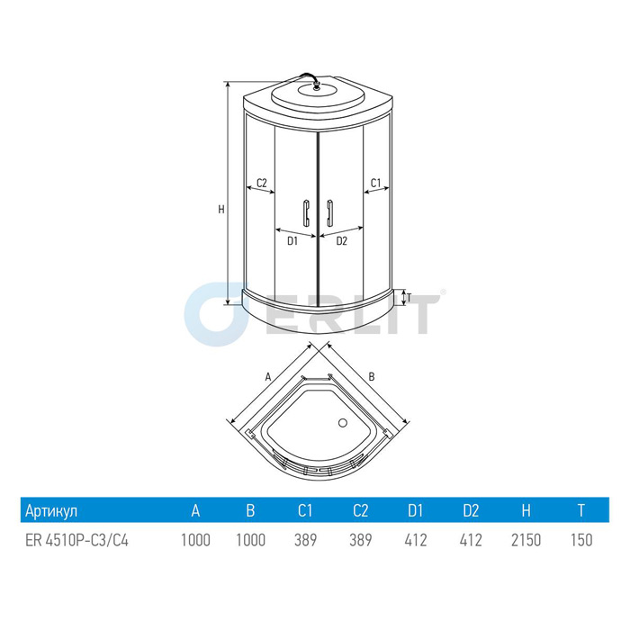 Гидромассажная душевая кабина Erlit ER4510Р-C4
