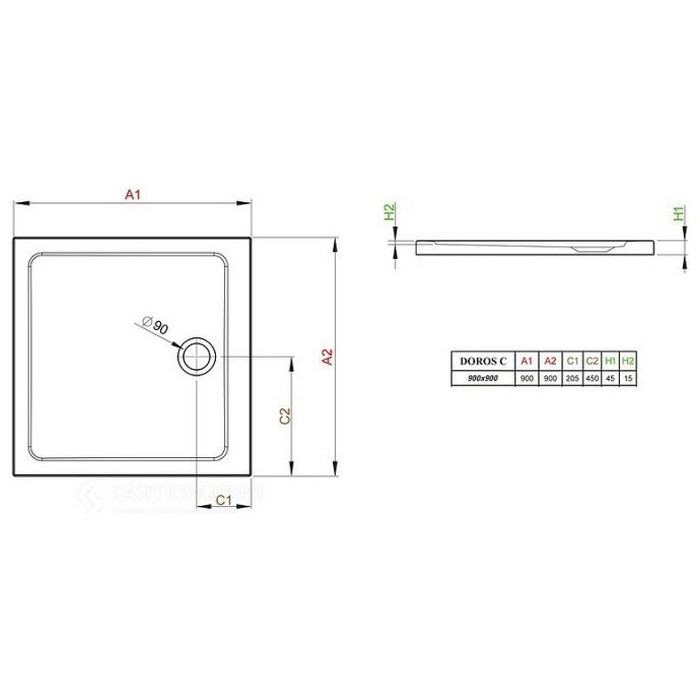 Акриловый поддон Radaway Doros C 90 90x90x4.5