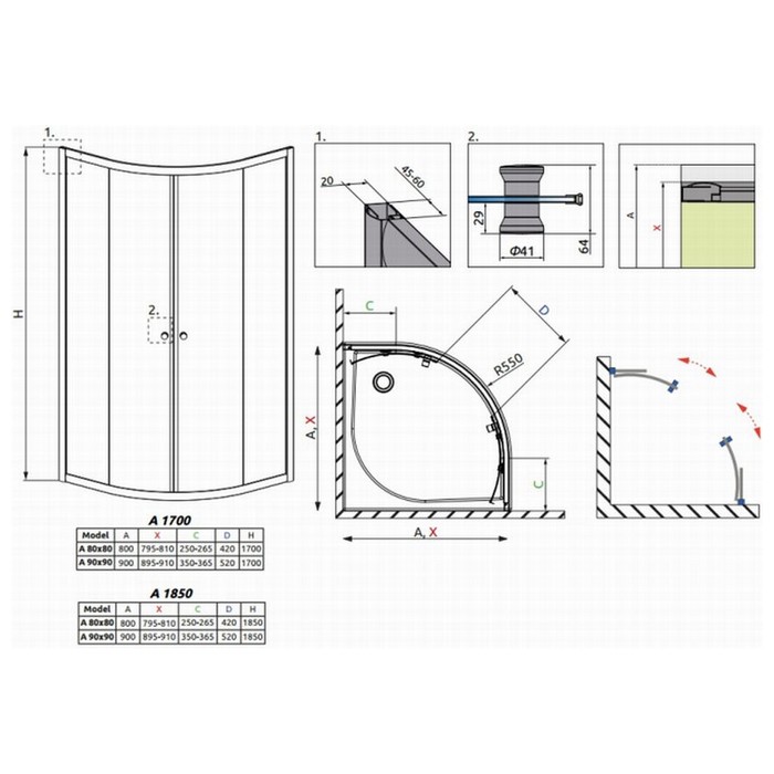 Classic A это душевой уголок 1/4 круга с двустворчатой раздвижной дверью.