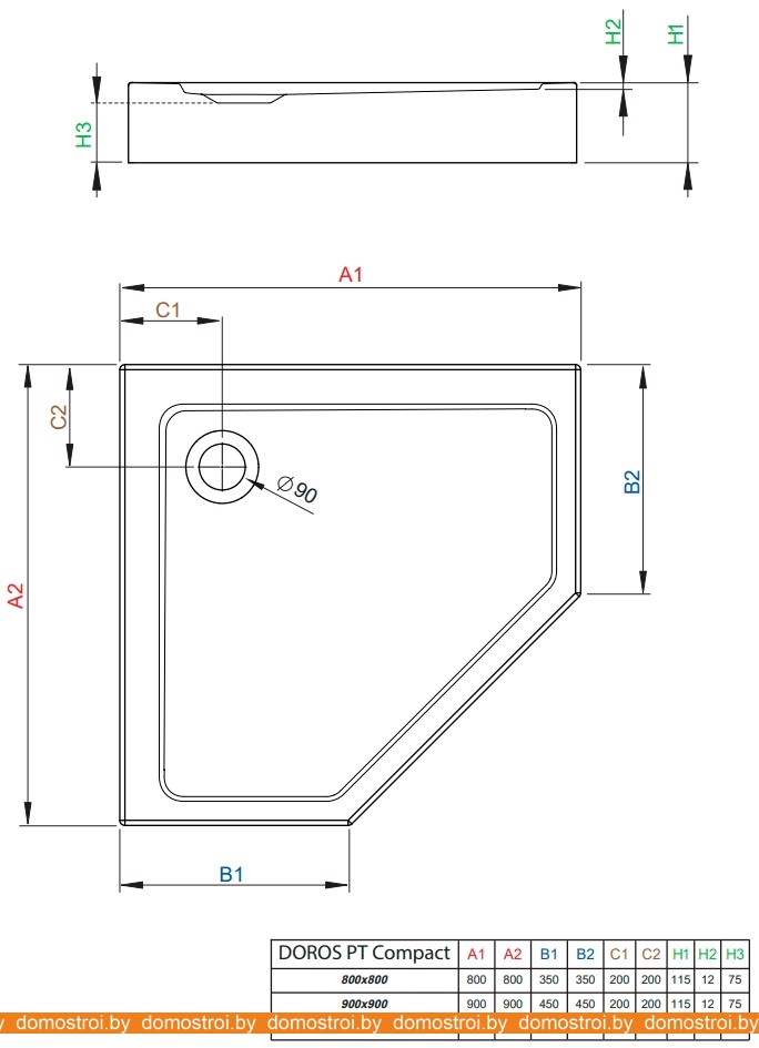 Душевой поддон Radaway Doros PT Compact 100x100