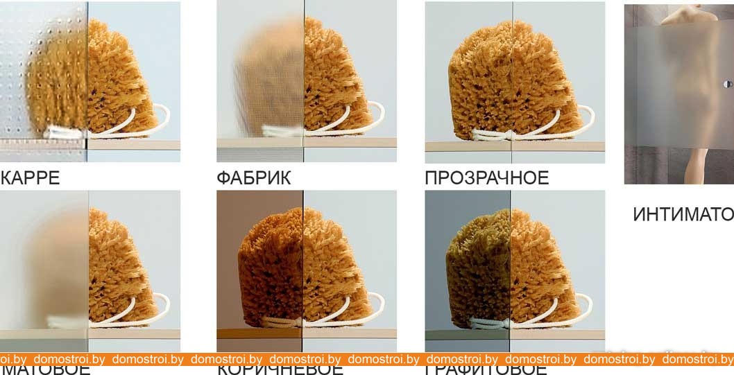 Доступные цвета стекла: прозрачное, сатинато, коричневое, графитовое и фабрик