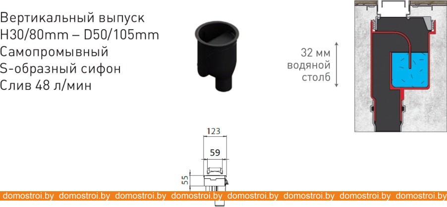 Душевой трап Berges Wasserhaus C1 Norma 900 090040 (матовый хром)