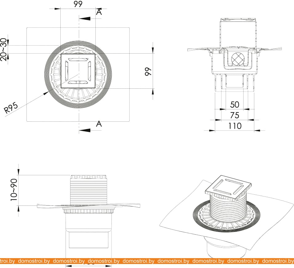 Душевой трап Berges Wasserhaus Zentrum Norma 100x100 090462 (матовый хром)