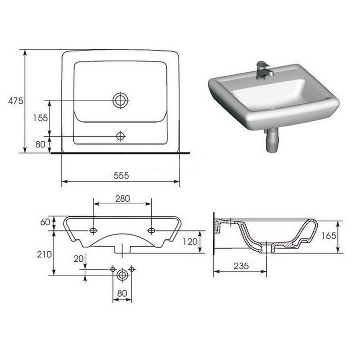 Смеситель, сифон и тумба продаются отдельно!