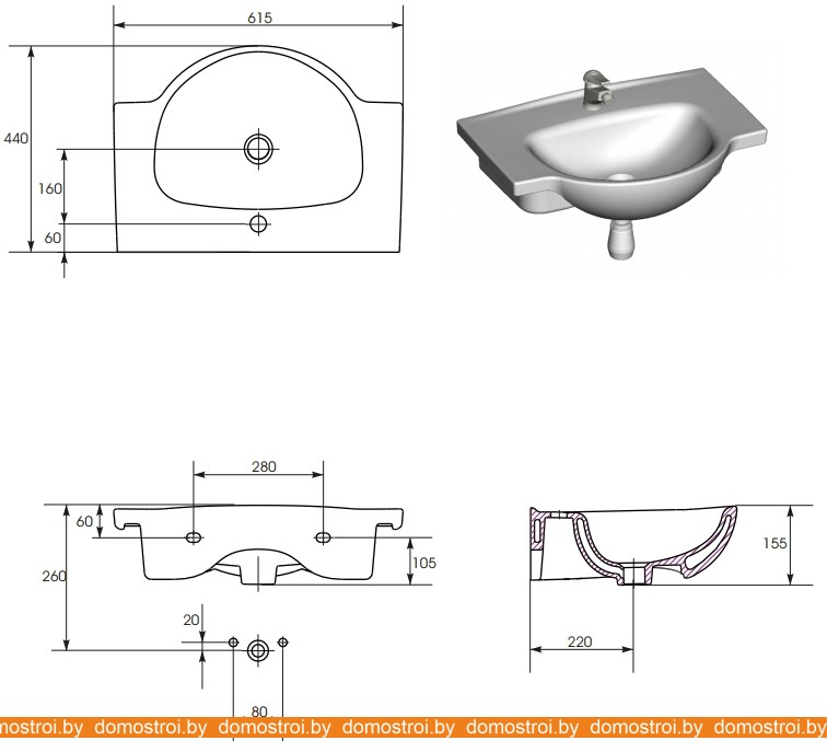 Умывальник Cersanit Nati 60 61.5x44