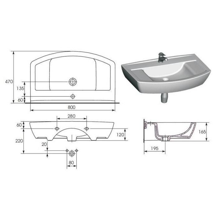 Умывальник Cersanit Olimpia 80