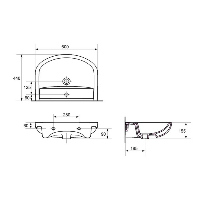 Умывальник Cersanit Arteco 60
