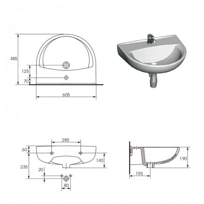 Смеситель, сифон и тумба продаются отдельно!