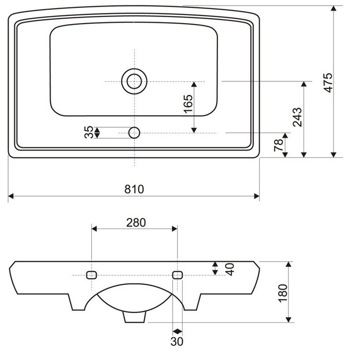 Отверстие под перелив: нет
