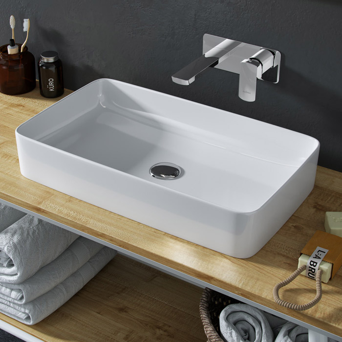 Умывальник Cori - это элегантное и изящное решение для современной ванной комнаты. Монтаж поверх столешницы обеспечивает разнообразие интерьерных решений, в том числе возможность установки с любым смесителем. Изделие обладает плавной прямоугольной формой со скругленными углами и утончающимися к верху бортиками, благодаря чему умывальник удобен в использовании и привлекателен визуально. Данная модель выполнена из санитарного фаянса, который полностью соответствует требованиям качества и гигиены. Поверхность умывальника абсолютно гладкая, белая, устойчива к износу и отталкивает грязь. Небольшие габариты раковины позволяют еще удобнее разместить ее на поверхности столешницы в вашей ванной, даже если там совсем немного места.