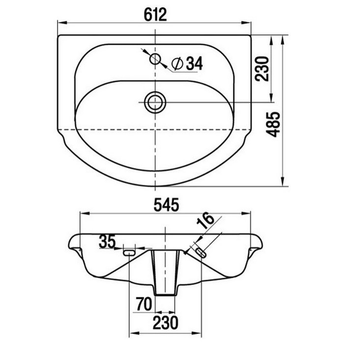 Расположение отверстия под смеситель - в центре.
