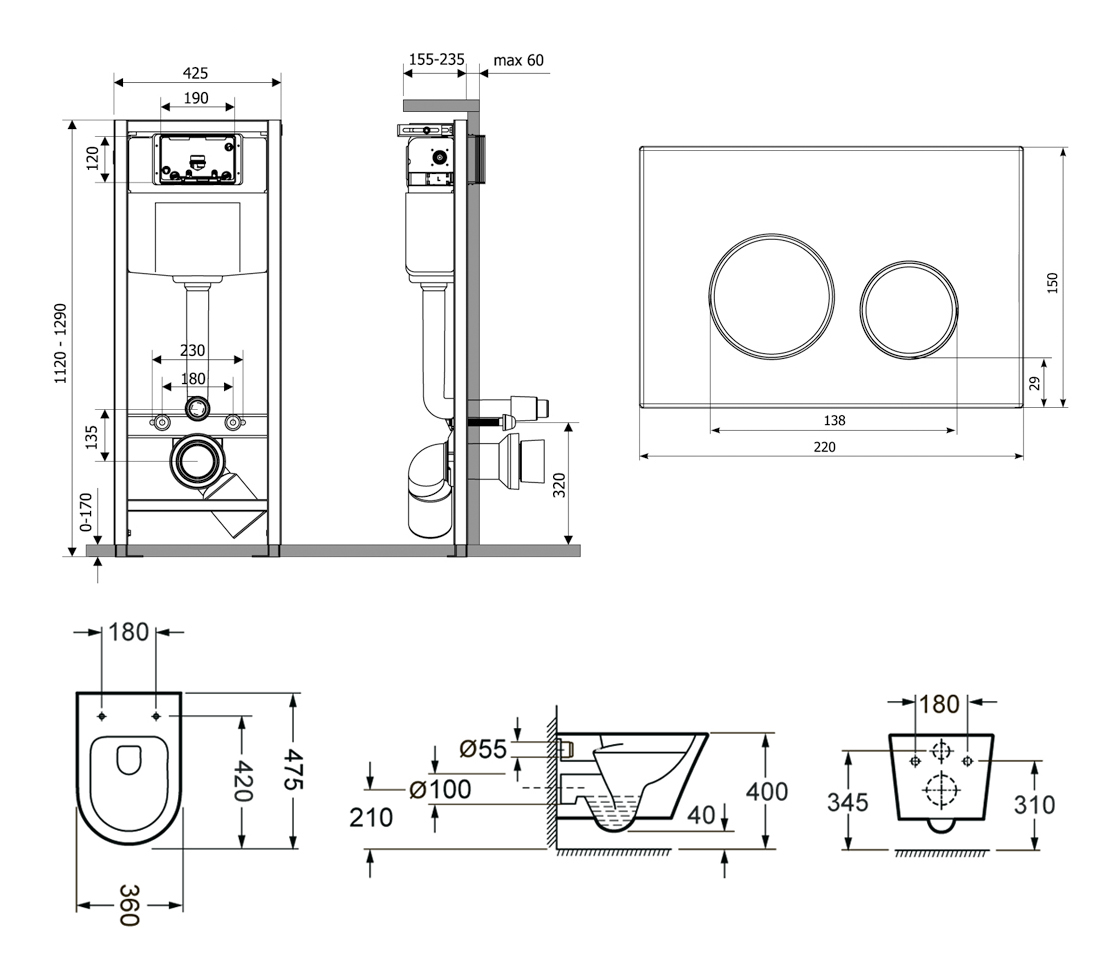 - 77040091 - Комплект инсталляции и унитаза 6 в 1 Lavinia Boho Relfix Biore Compacto Rimless (система инсталляции Relfix 38010010; универсальный комплект креплений к стене (включено в артикул 38010010); звукоизолирующая пластина для унитаза (включена в артикул 38010010); клавиша смыва Relfix 380502MC; подвесной унитаз Biore Compacto Rimless 330402CR; быстросъемное дюропластовое сиденье с медленно опускающейся крышкой и хромированными металлическими петлями (включено в артикул 330402CR)