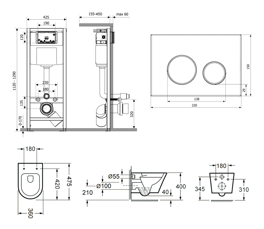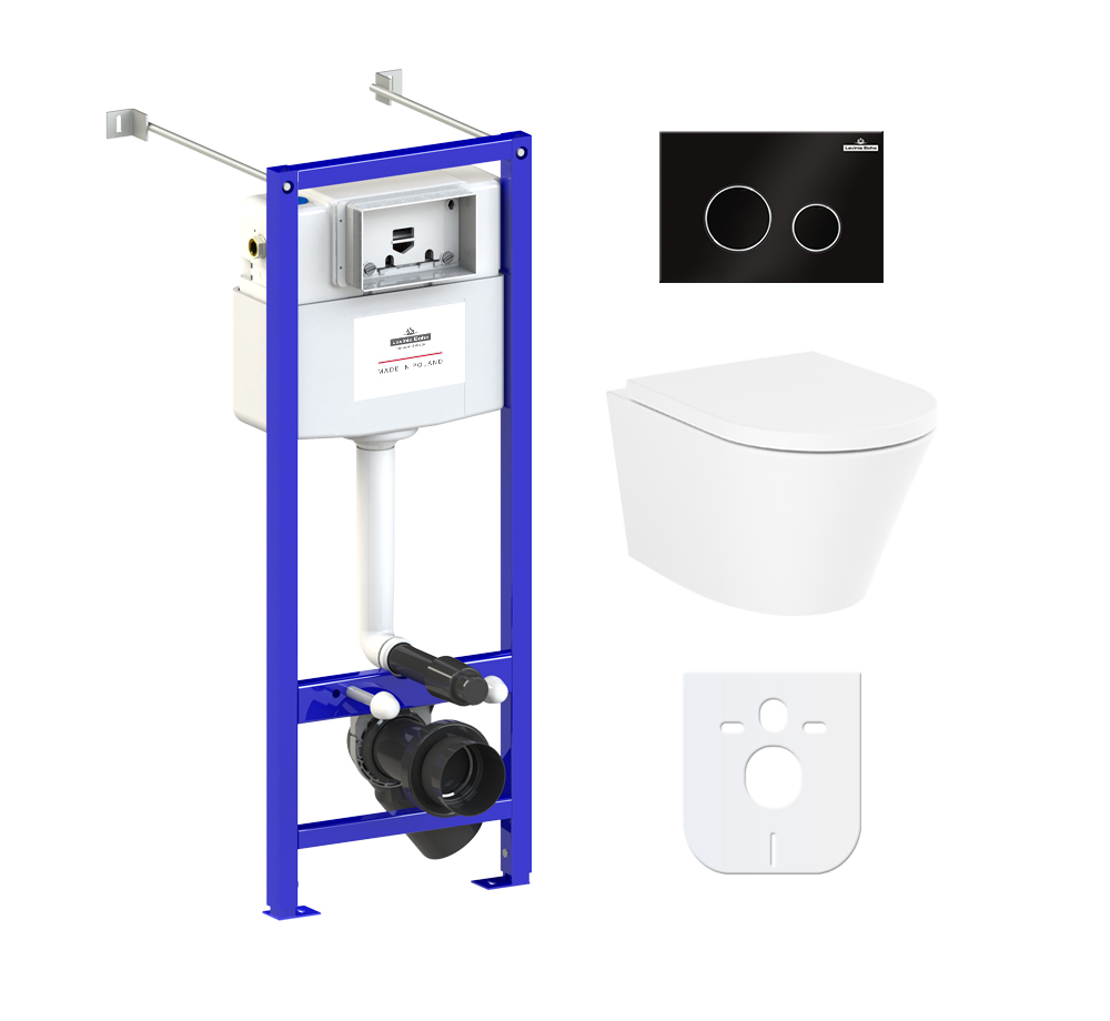 - 77050176 - Комплект инсталляции и унитаза 6 в 1 Lavinia Boho Relfix Biore Compacto Rimless (система инсталляции Relfix 38010020; удлиненный комплект креплений к стене (включено в артикул 38010020); звукоизолирующая пластина для унитаза (включена в артикул 38010020); клавиша смыва Relfix 380502MB; подвесной унитаз Biore Compacto Rimless 330402CR; быстросъемное дюропластовое сиденье с медленно опускающейся крышкой и хромированными металлическими петлями (включено в артикул 330402CR)