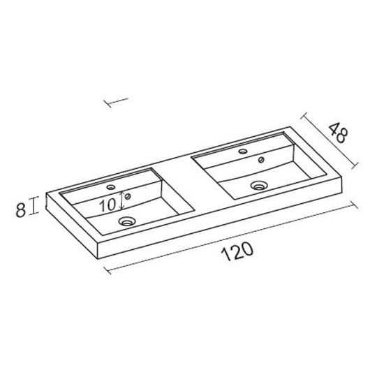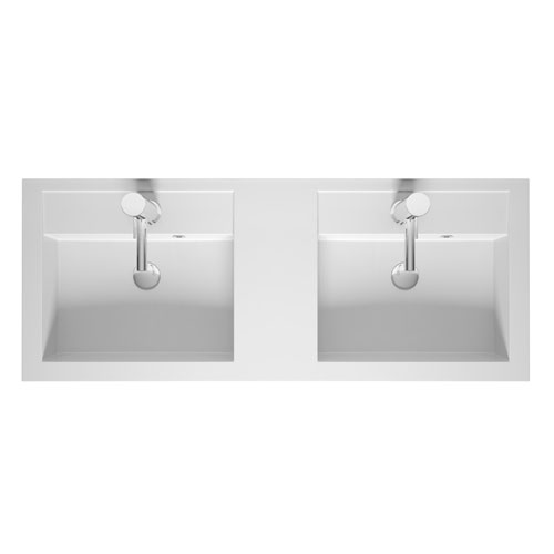 Умывальник имеет отверстия под два смесителя и две мойки.