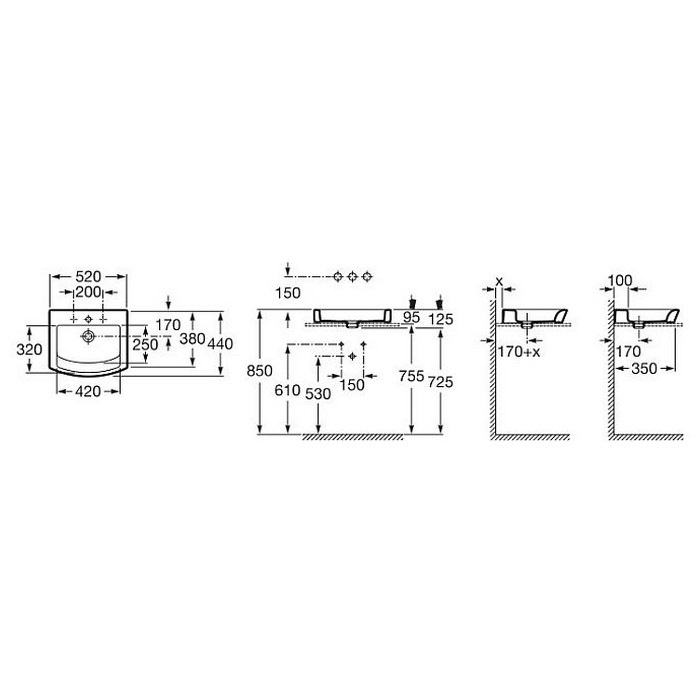 Умывальник Roca Hall 52*44 A327882000 накладной