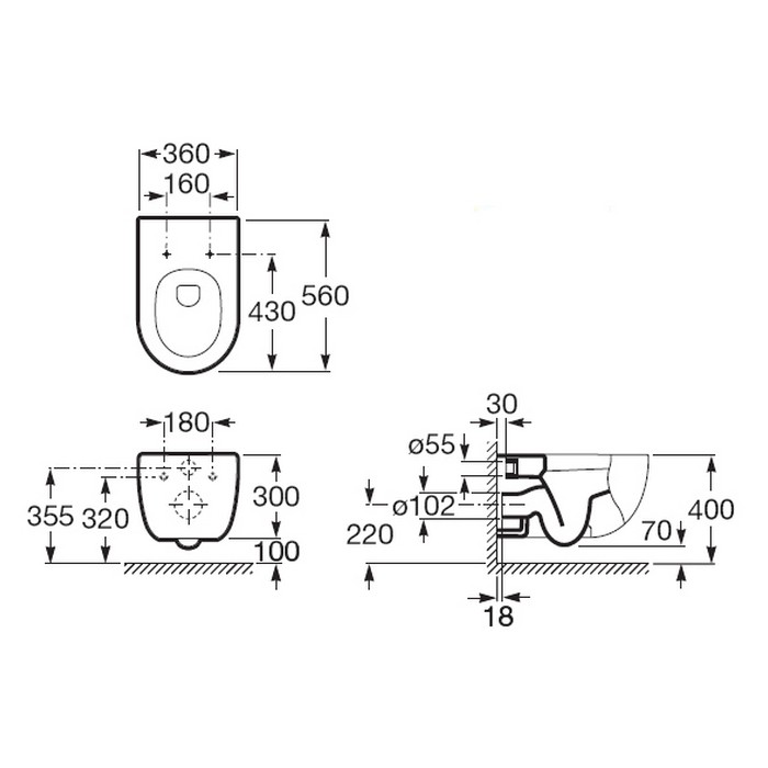 Подвесной унитаз Roca Meridian-N A346247000 без сиденья и бачка