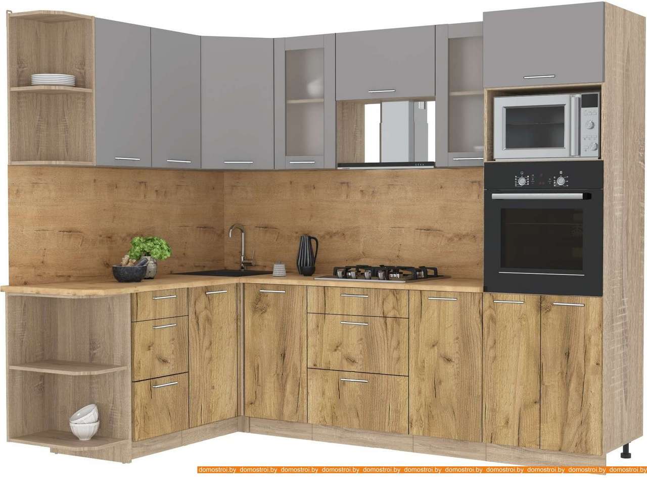 Кухня Интерлиния Мила 1.68x2.6 левая (серебристый-дуб золотой-дуб бунратти)