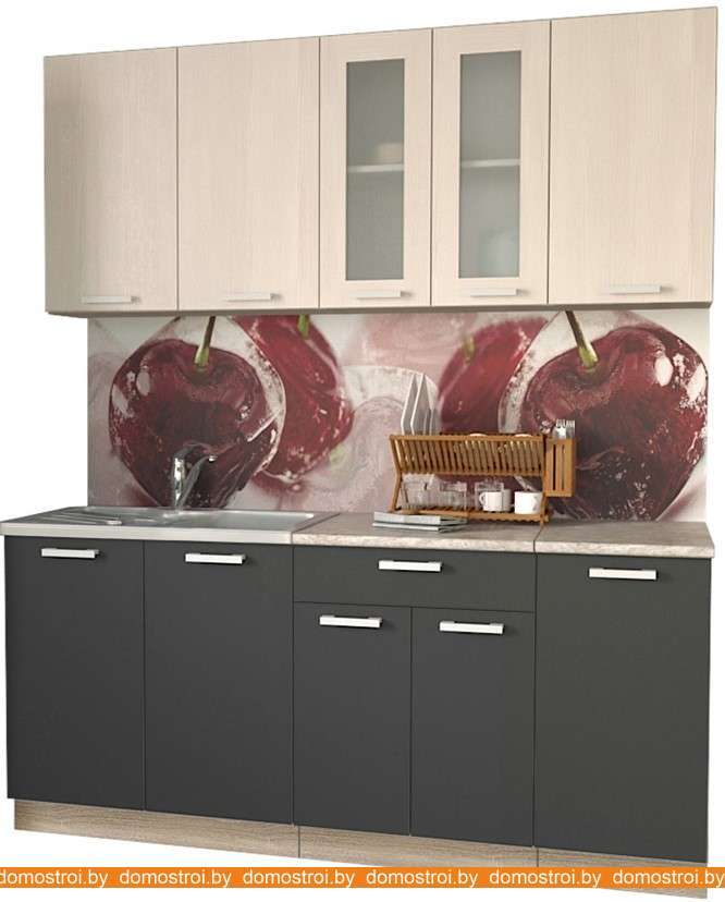 Кухня Интерлиния Мила 18 (вудлайн кремовый-антрацит-бискайская сосна)