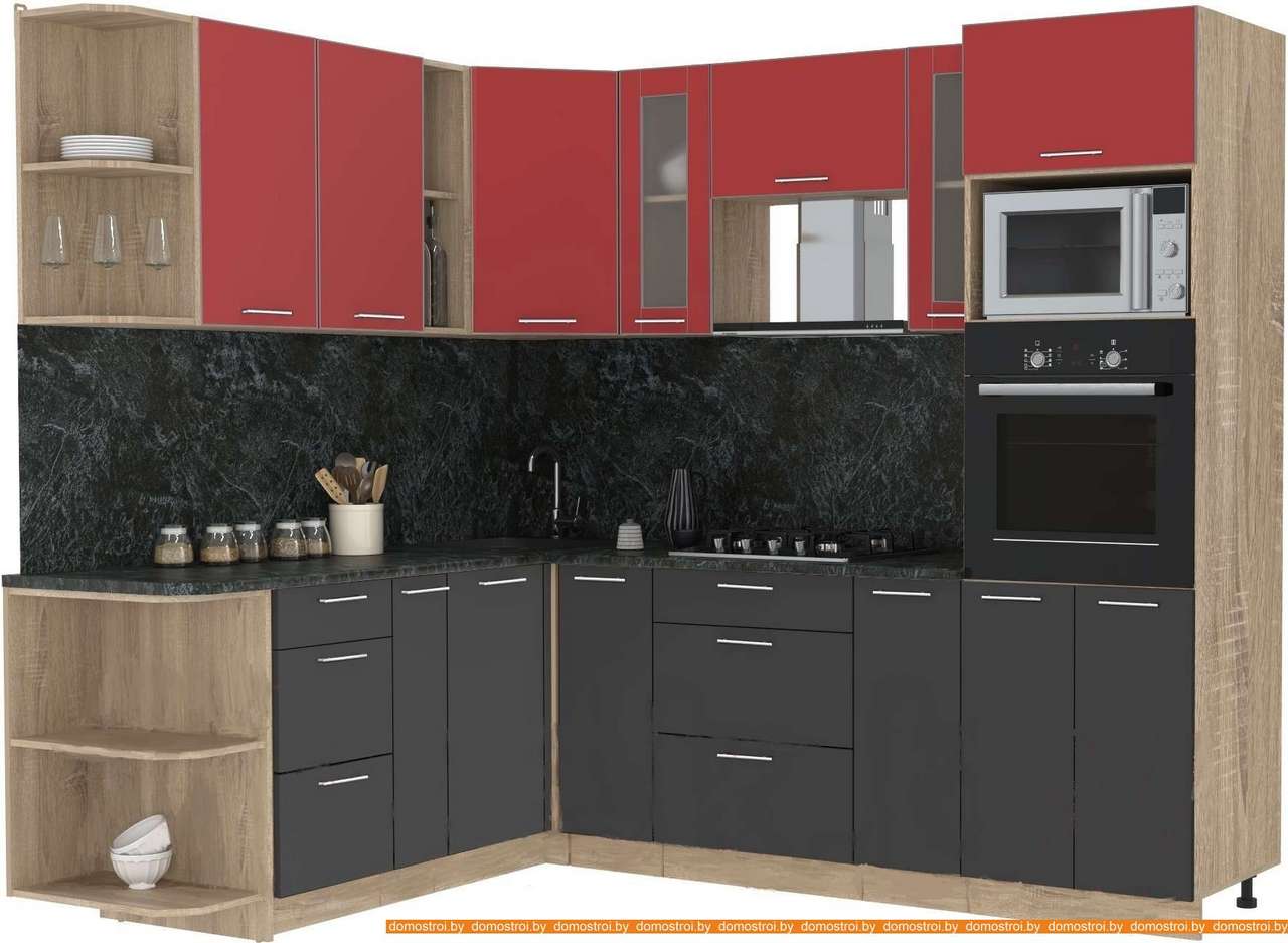 Кухня Интерлиния Мила 1.88x2.4 левая (красный-антрацит-кастилло темный)