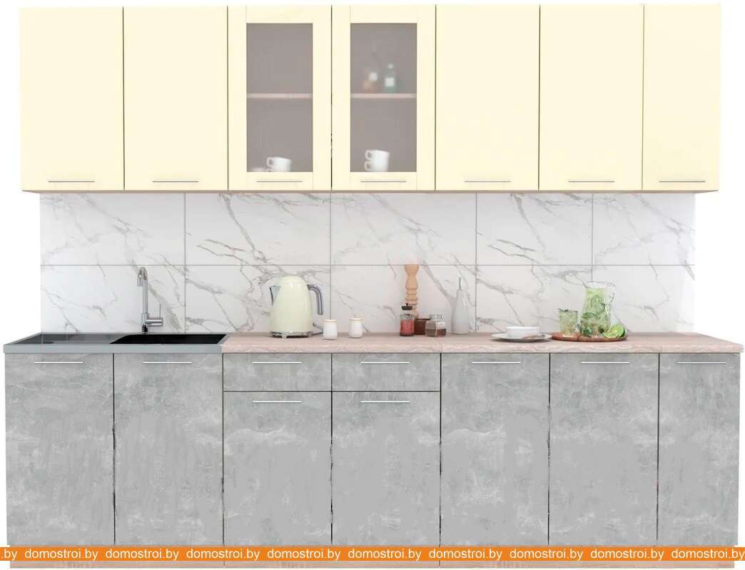 Кухня Интерлиния Мила 1.88x2.4 левая (ваниль-бетон-травертин)