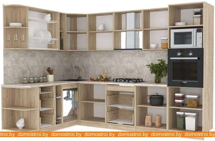 Кухня Интерлиния Мила 1.88x3.0 левая (красный-дуб венге-малага)