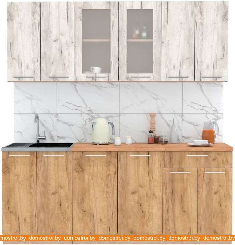 Кухня Интерлиния Мила 20-60 (дуб белый-дуб золотой-дуб бунратти)