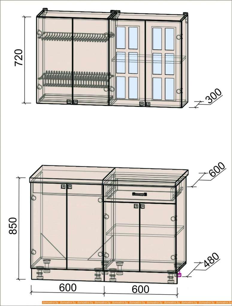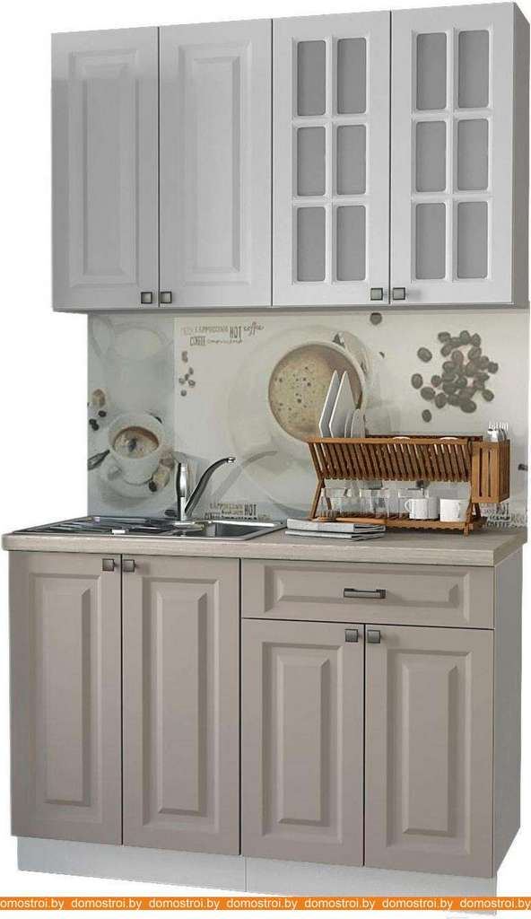 Кухня Интерлиния Мила Деко 1.2 А (белый/луна/травертин серый)