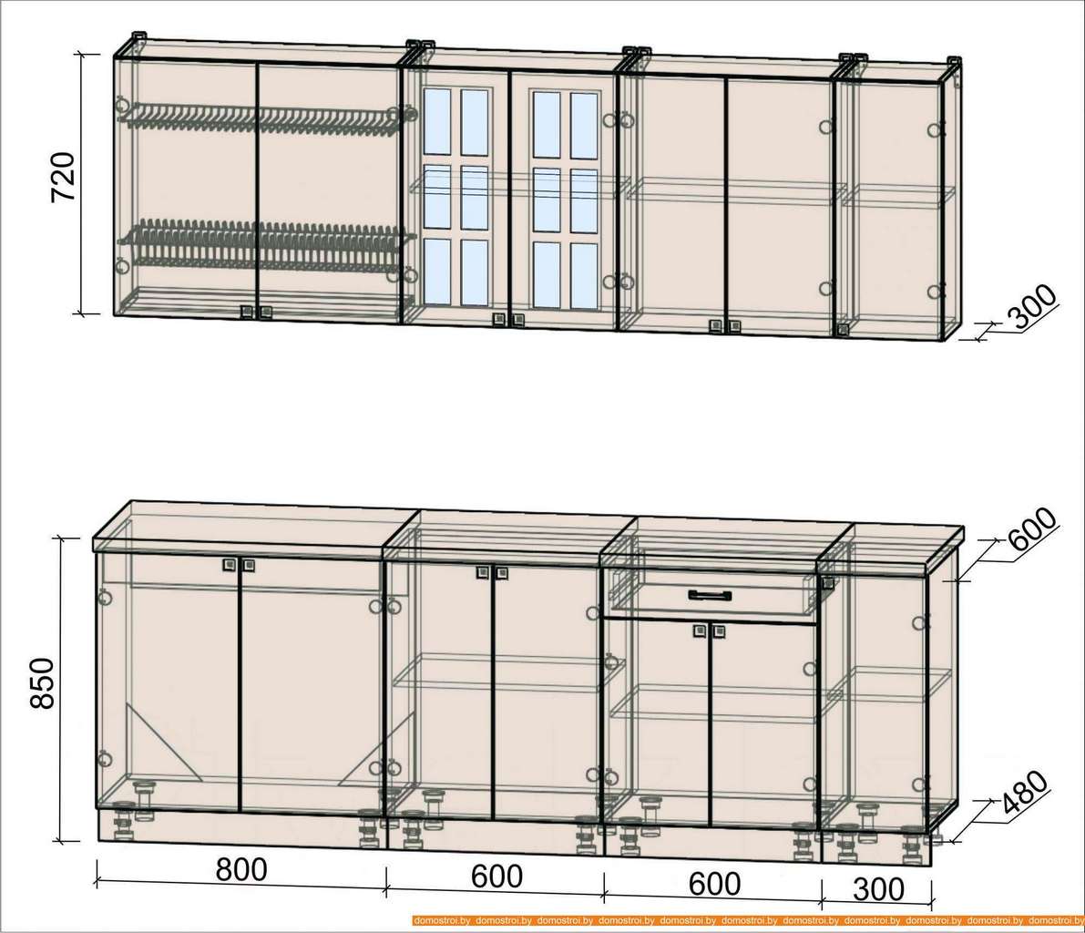 Кухня Интерлиния Мила Деко 2.3 Б (океан/травертин серый)