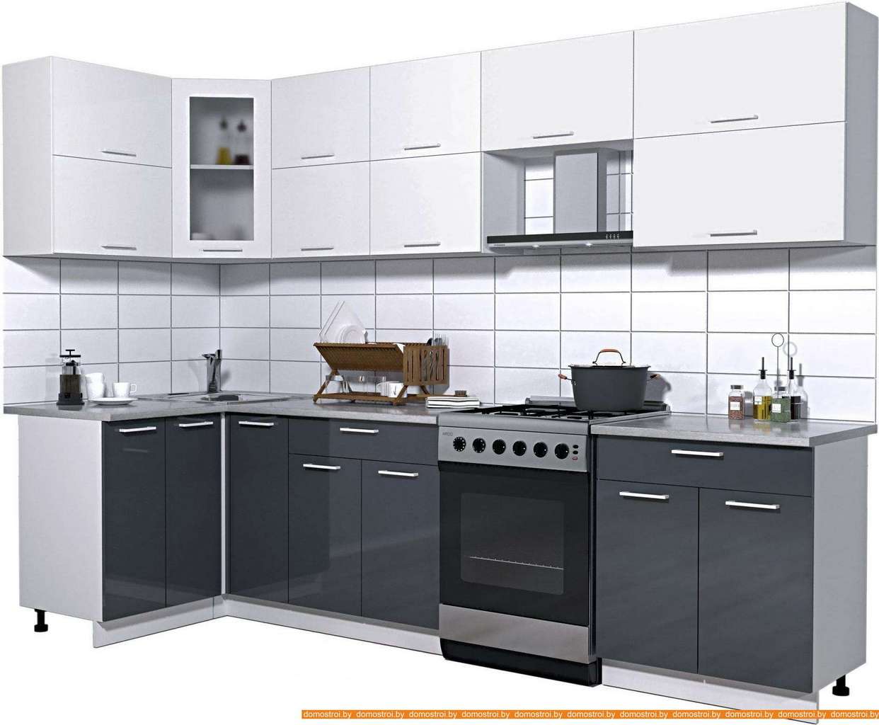 Кухня Интерлиния Мила Gloss 60-12x29 (белый/асфальт глянец)