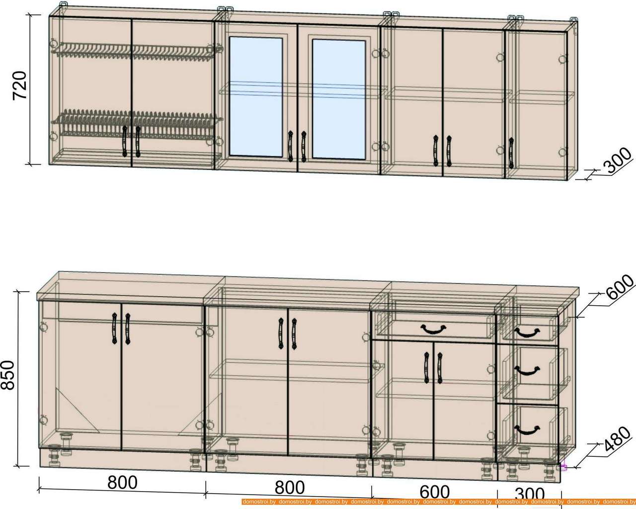 Кухня Интерлиния Мила Крафт 2.5Б (дуб лазурный)