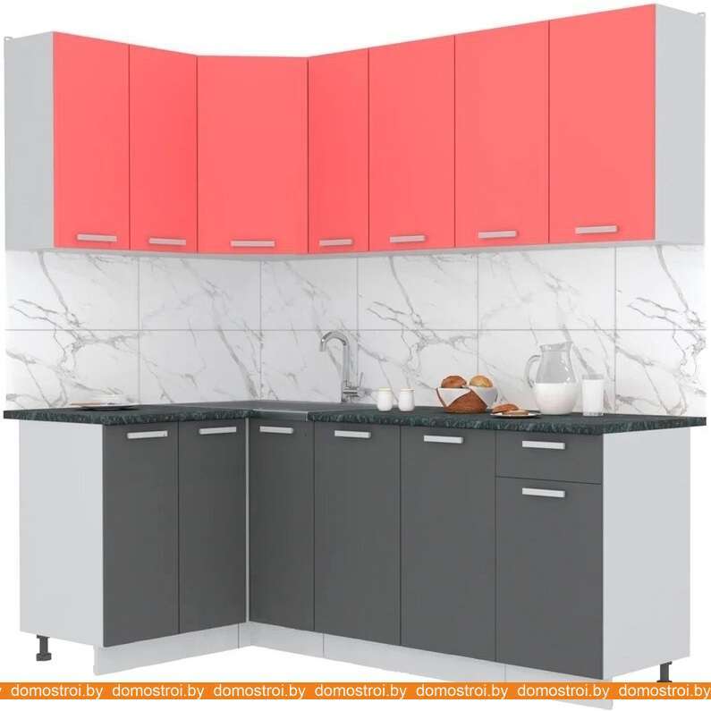 Кухня Интерлиния Мила Лайт 1.2x2.1 (красный-антрацит-кастилло темный)