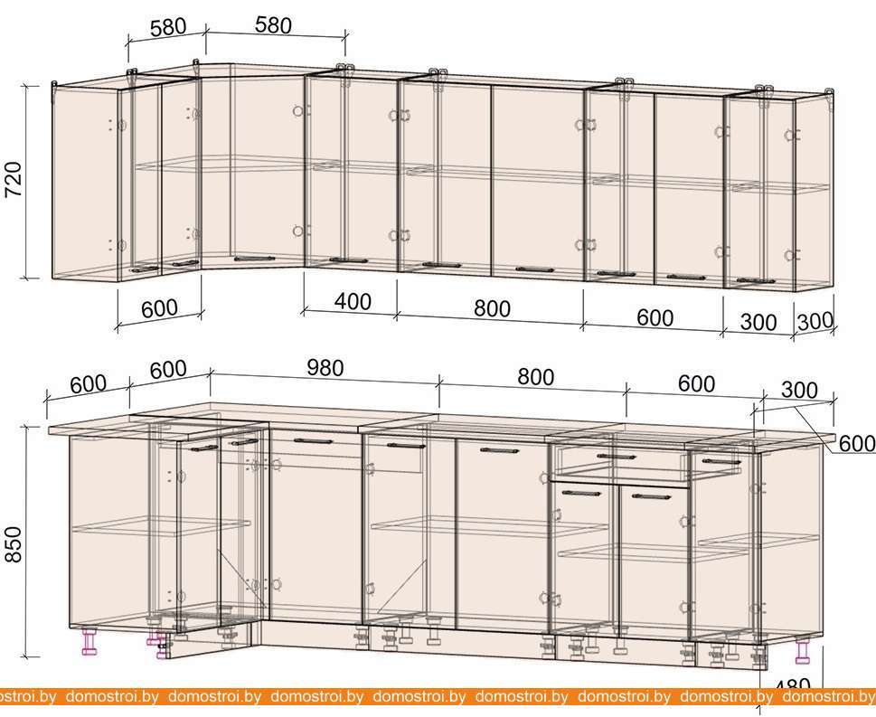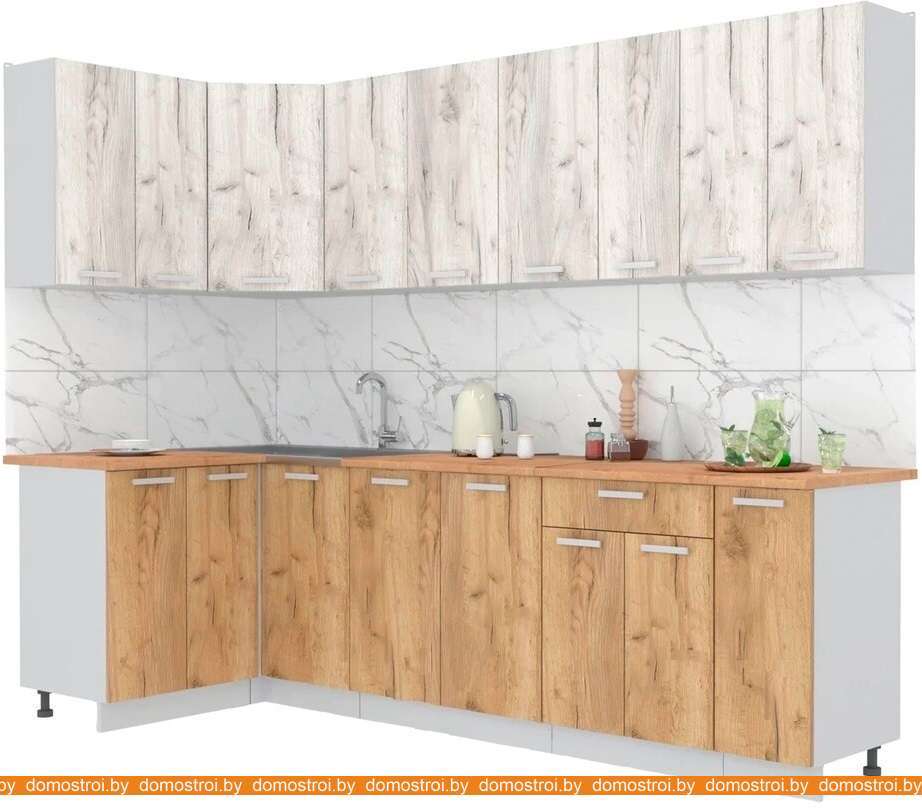 Кухня Интерлиния Мила Лайт 1.2x2.7 (дуб белый-дуб золотой-дуб бунратти)
