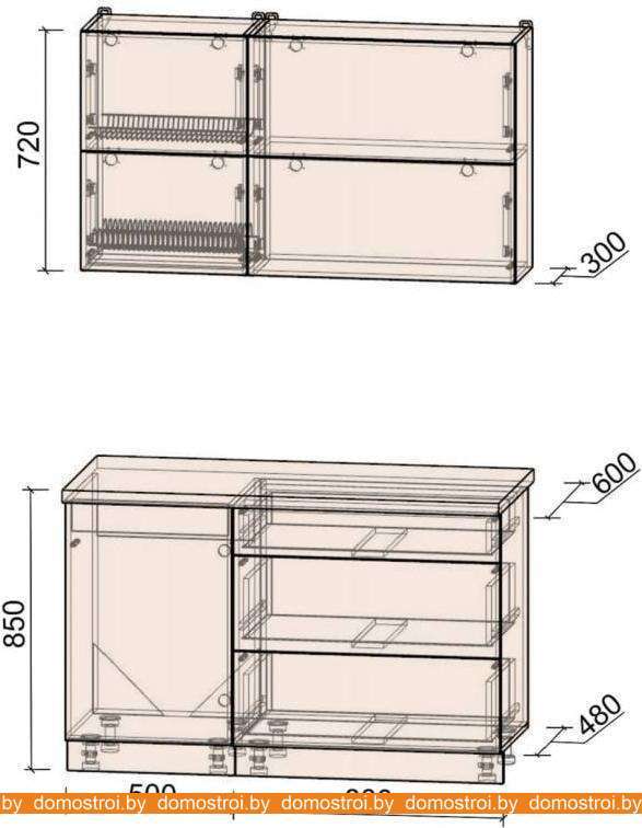 Кухня Интерлиния Мила Матте 1.3 А (океан/луна/травертин серый)