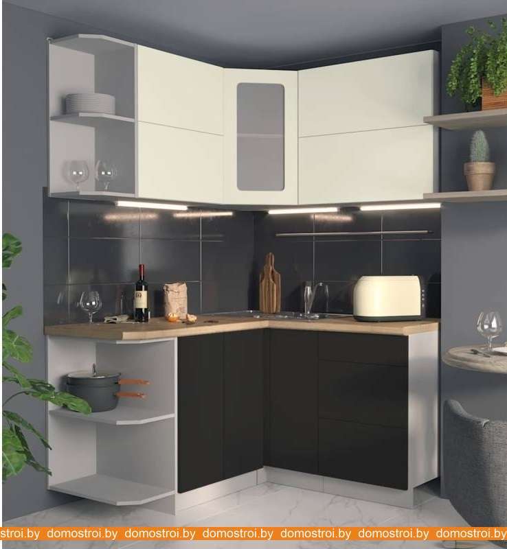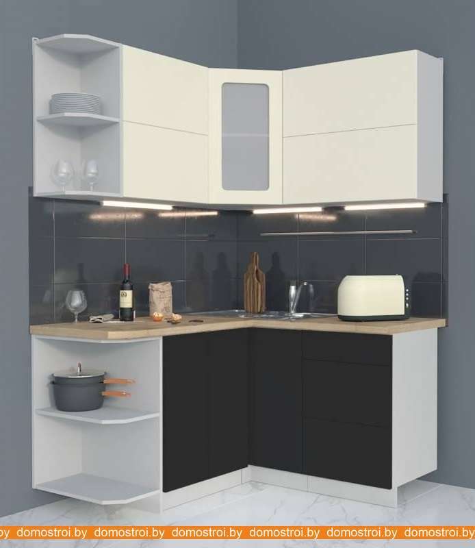 Кухня Интерлиния Мила Матте 1.5x1.4 А правая (слон кость-пепел-травертин серый)