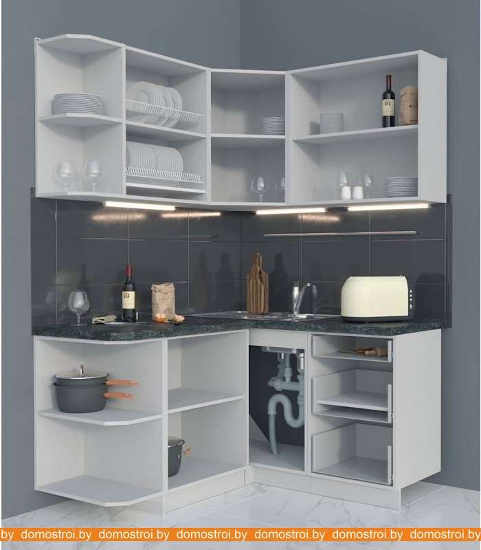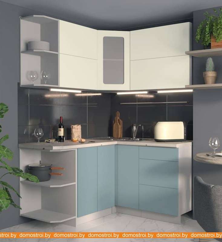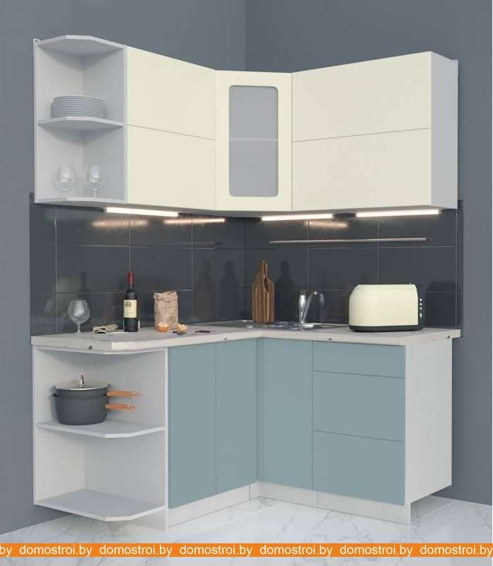 Кухня Интерлиния Мила Матте 1.5x1.4 А правая (слоновая кость-океан-опал светлый)