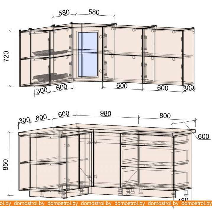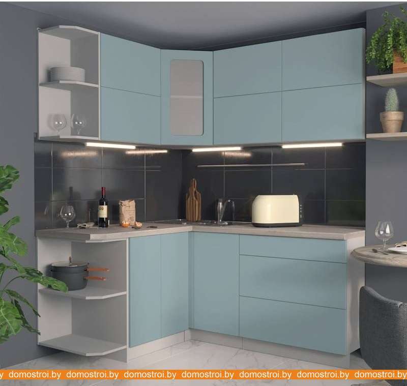 Кухня Интерлиния Мила Матте 1.5x1.8 А правая (океан-океан-травертин серый)