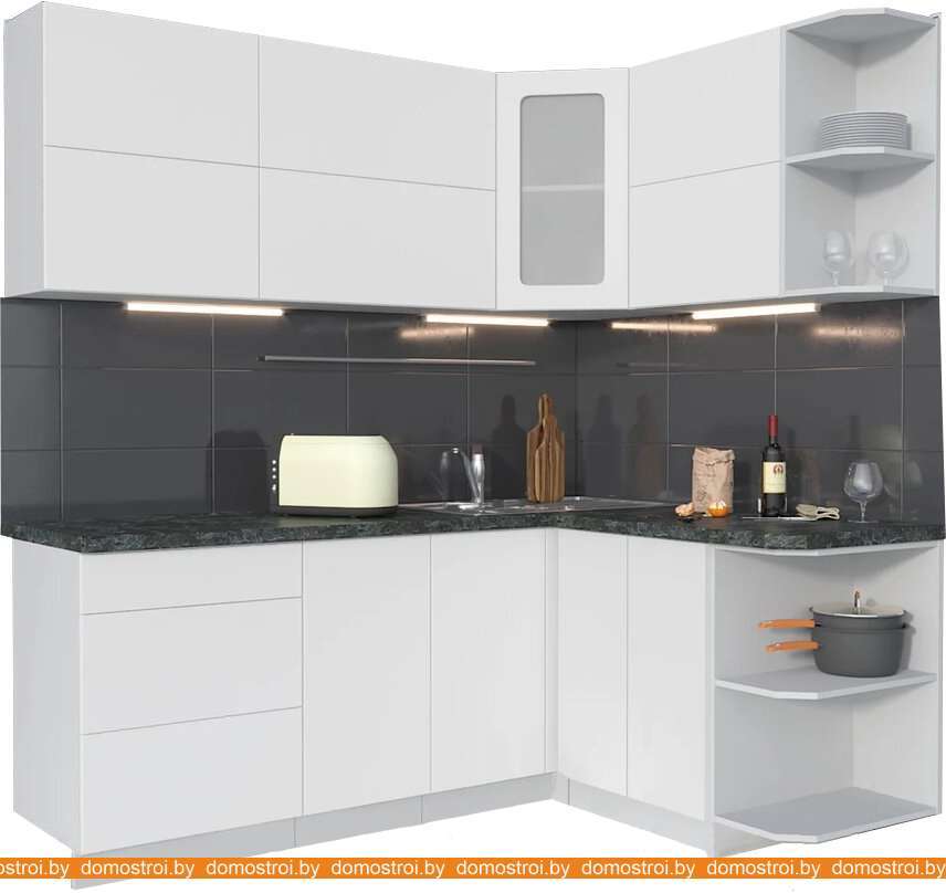 Кухня Интерлиния Мила Матте 1.5x2.0 А правая (белый-белый-кастилло тёмный)