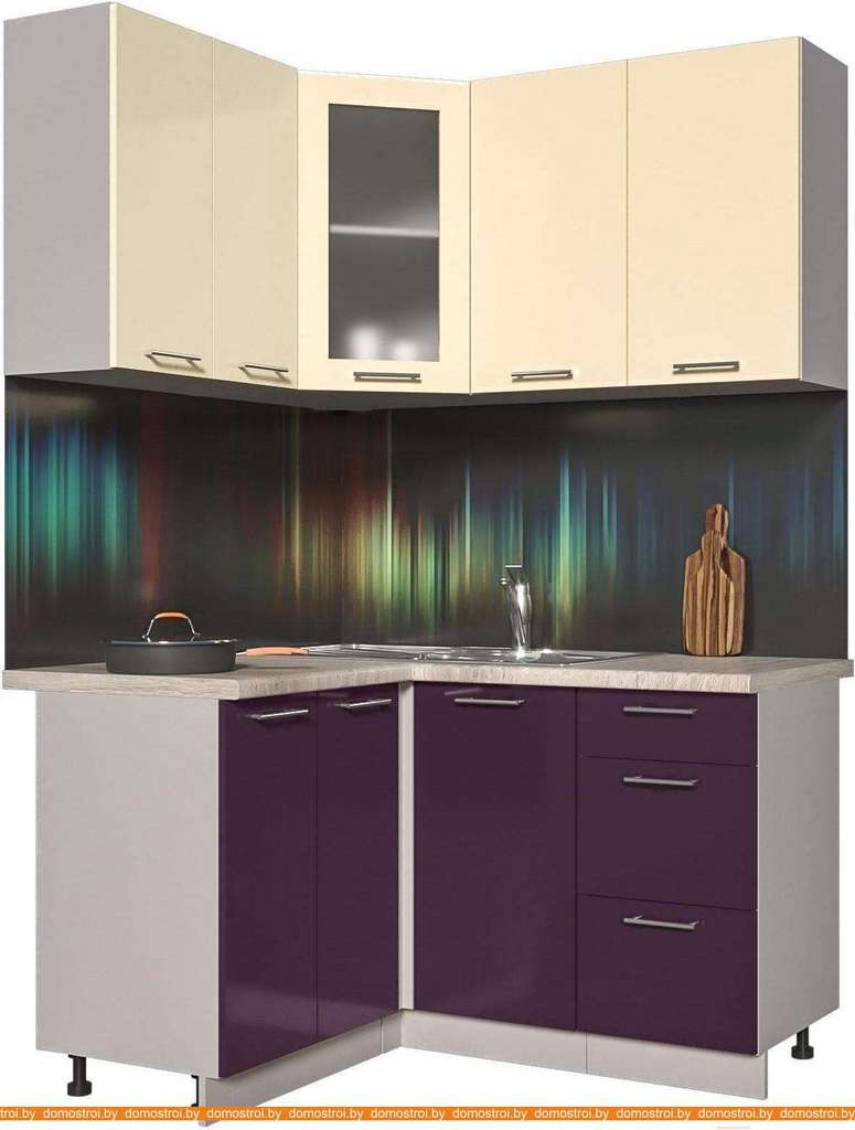 Кухня Интерлиния Мила Пластик 1.2x1.4 (слива глянец/ваниль глянец/травертин)