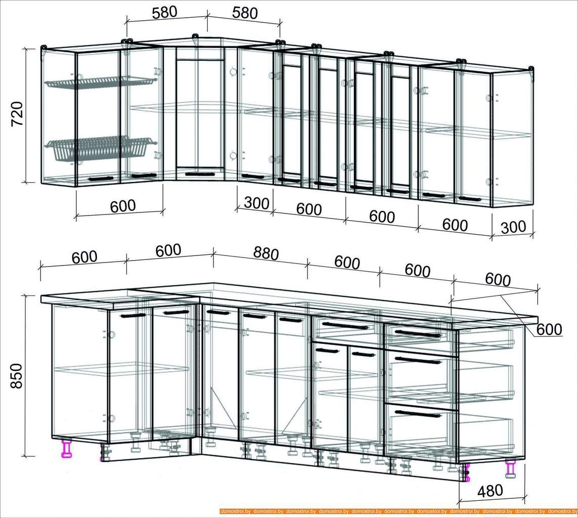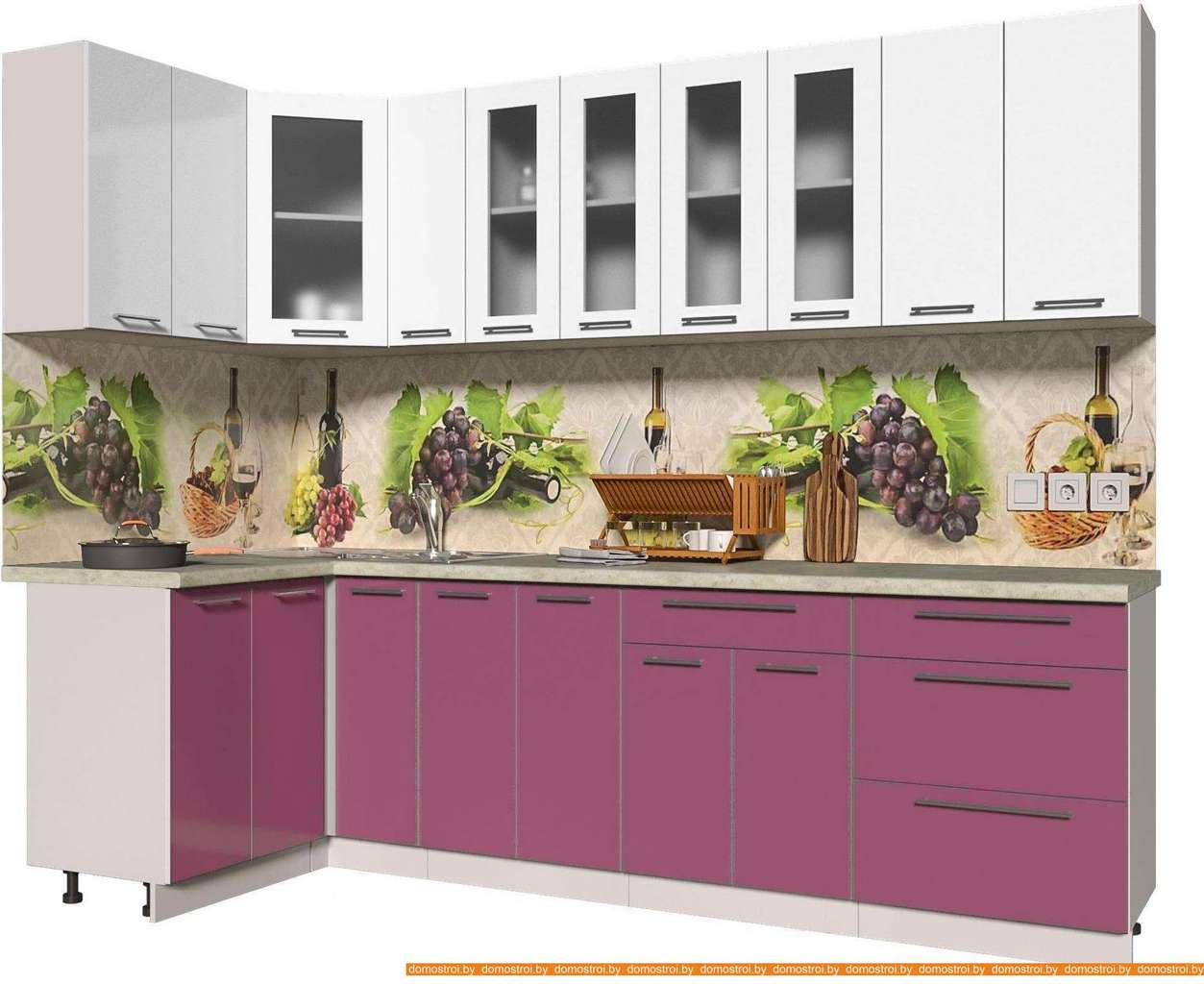 Кухня Интерлиния Мила Пластик 1.2x2.7 (гортензия гл/белый гл/опал светлый)