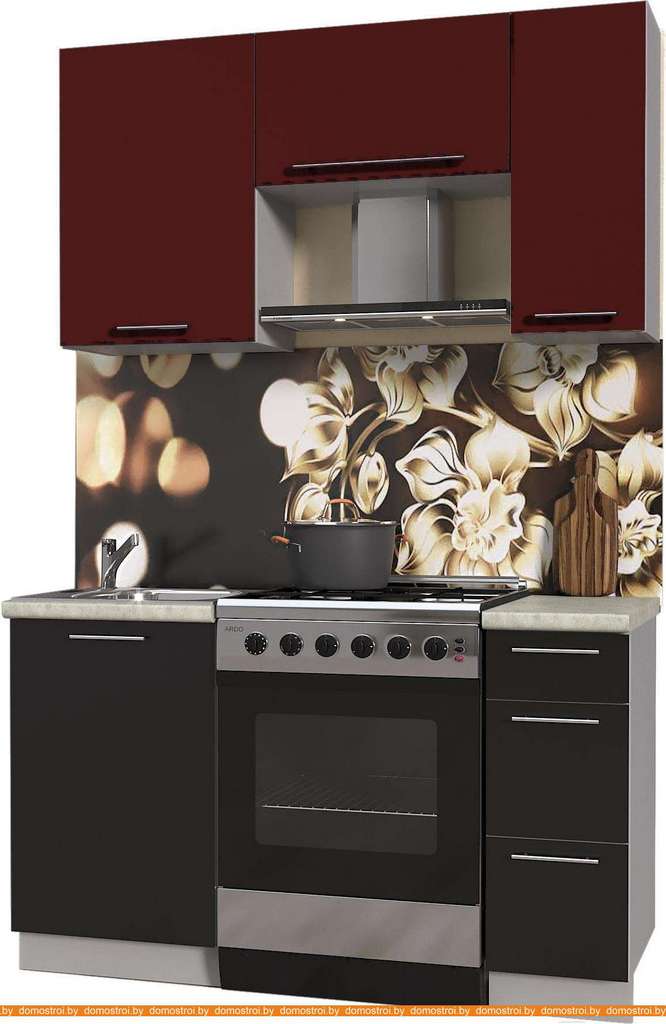Кухня Интерлиния Мила Пластик 1.4 А (черный глянец/бордо глянец/опал светлый)